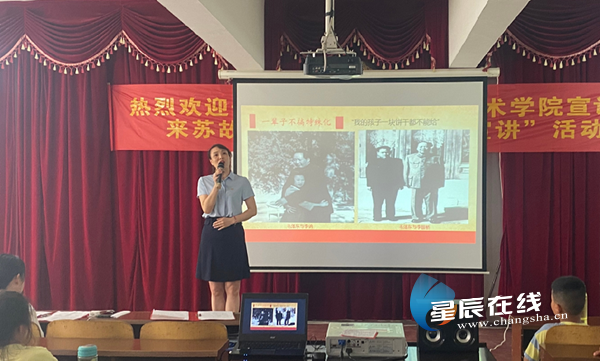 星辰在线6月28日讯(通讯员 曾永强 匡芳 星辰全媒体记者 杨湘江)6月24日凌晨6点,长沙商贸旅游职业技术学院李文欢、吴洁老师就和学校学生艺术团17名同学踏上了赴浏阳市官桥镇的路途,这是在该校派驻帮扶官桥镇苏故村党总支第一书记朱明松的联络下,前往参加官桥镇举办的庆祝中国共产党成立100周年庆典演出。当天中午,由该校9名师生组成的党史学习教育微宣讲团、和以该校党委副书记李晖教授为组长的“三湘(湘菜、湘商、湘旅)”旅游规划编制团队共12人抵达了苏故村。